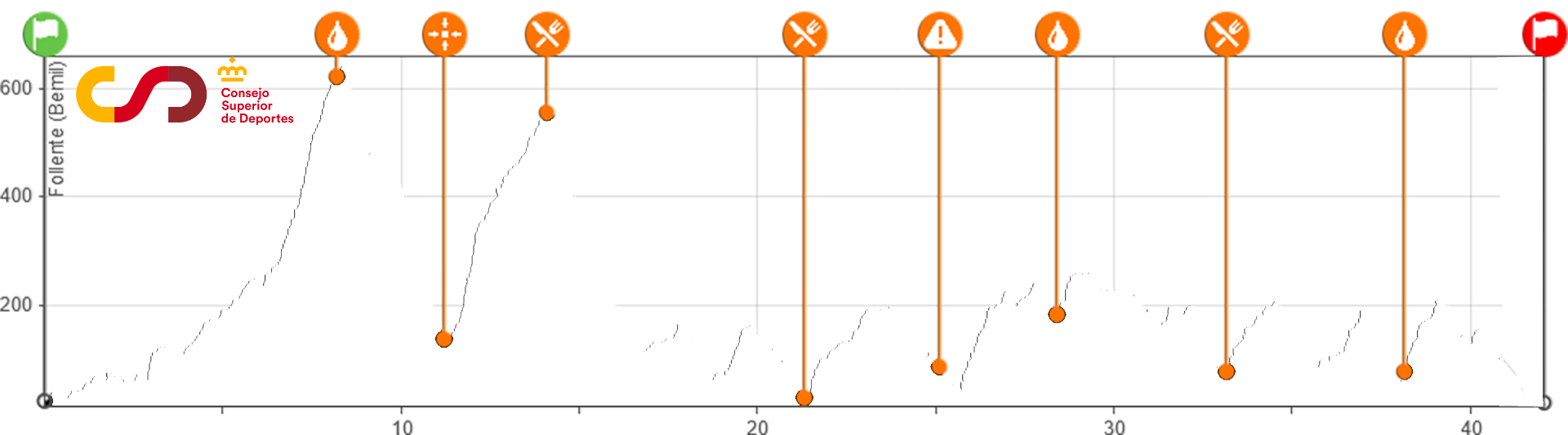 Los tramos cronometrados estarán identificados con una bandera de inicio y una bandera de finalización. Dispones de 2 tramos exclusivos en la distancia larga 43km. Los otros 2 tramos serán compartidos con la distancia media pero con premiaciones independientes para cada carrera.