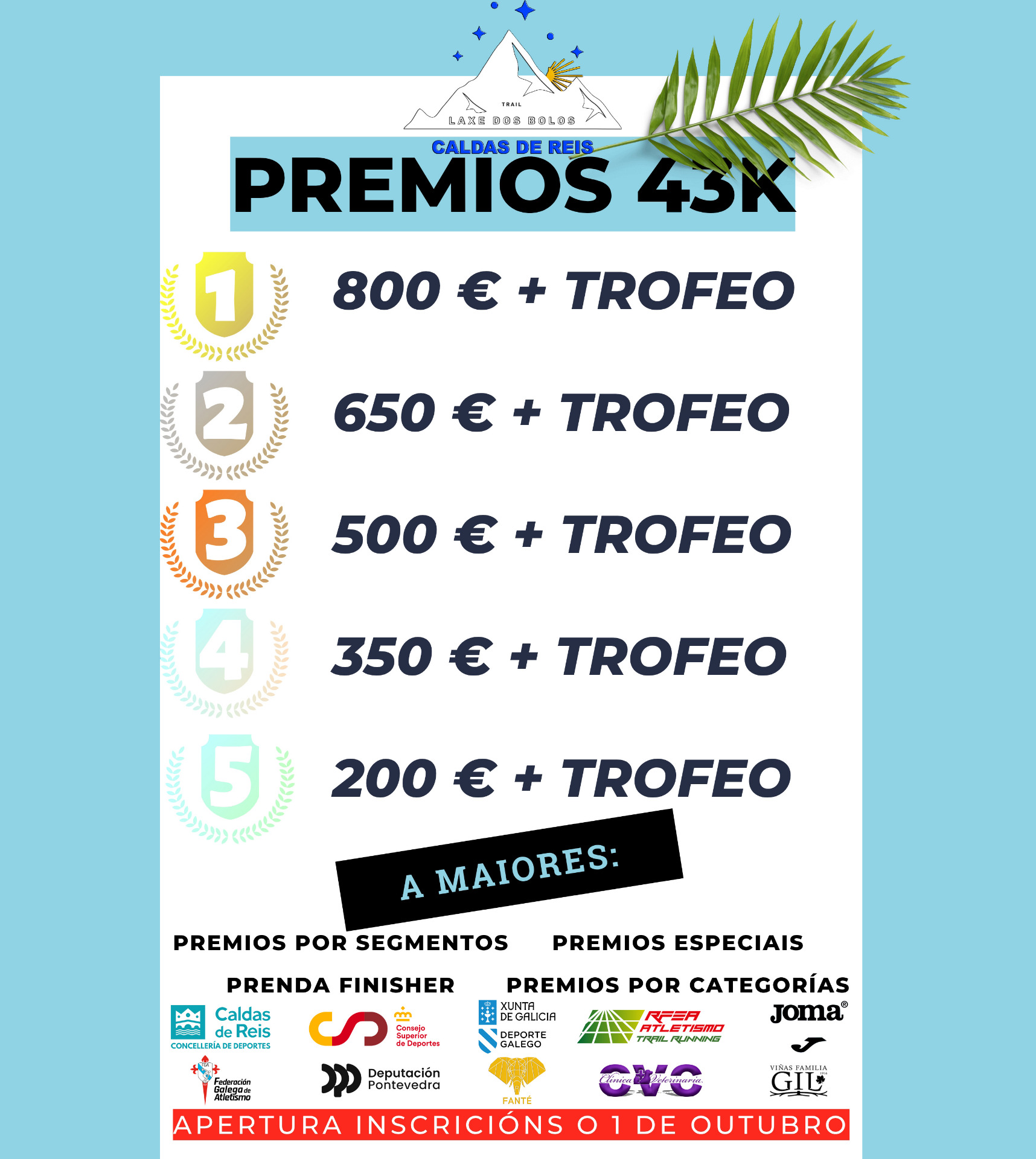 Sumados ós premios por gañar os segmentos cronometrados o trail medio, que percorrerá os montes Segade e Santa María tamén dará premios en metálico para as tres primeiras e primeiros clasificados.