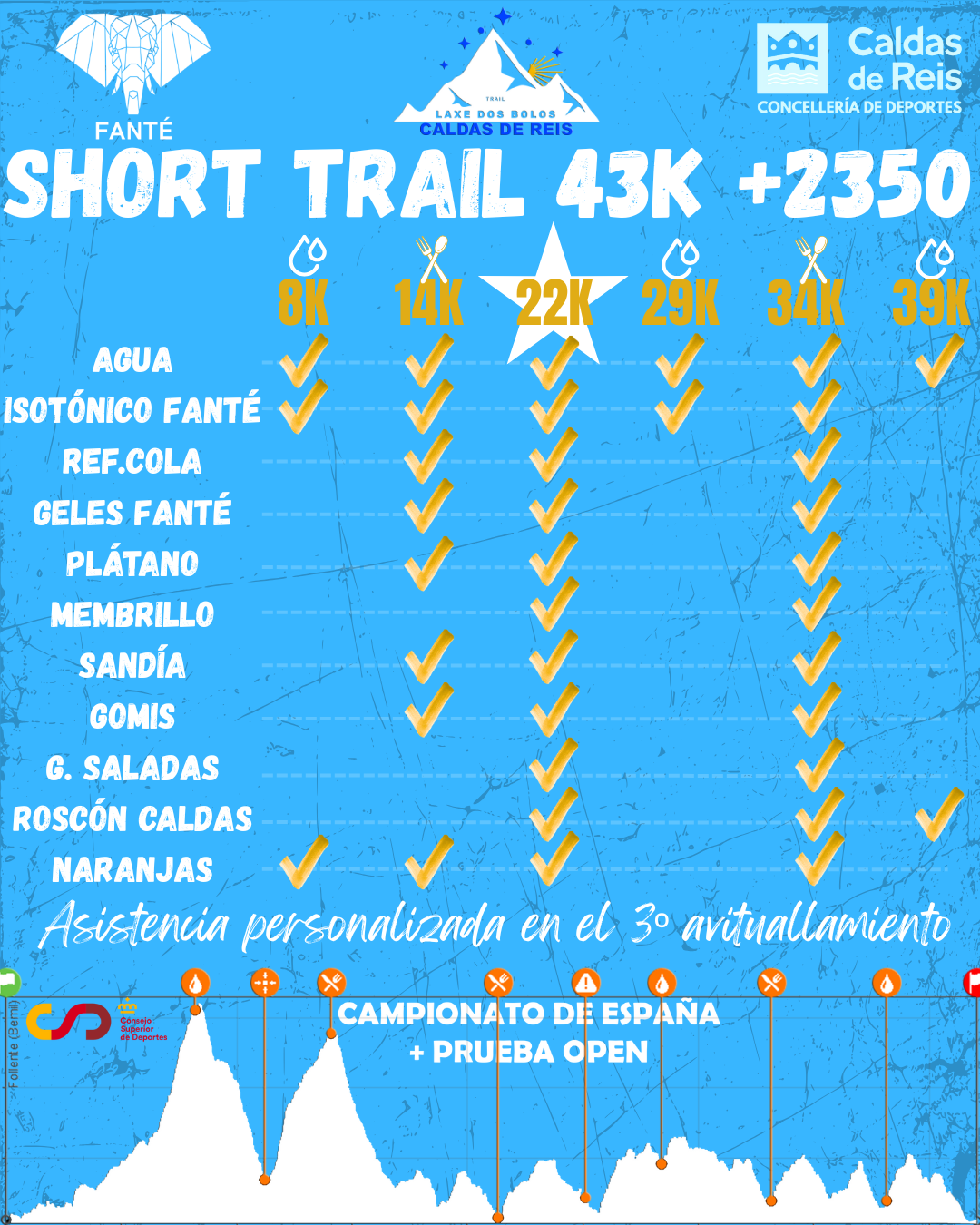 Grazas a ser unha proba aberta poderás compartir percorrido co Campionato de España de Trailrunning 2026 individual e clubs que se decidirá nos seus 43km e máis de 2.300 metros de desnivel positivo.